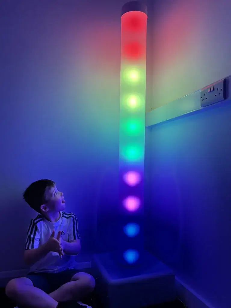 Our Disco Tube reacts to sound by illuminating in a stepped rainbow pattern, creating an engaging and interactive sensory experience.
