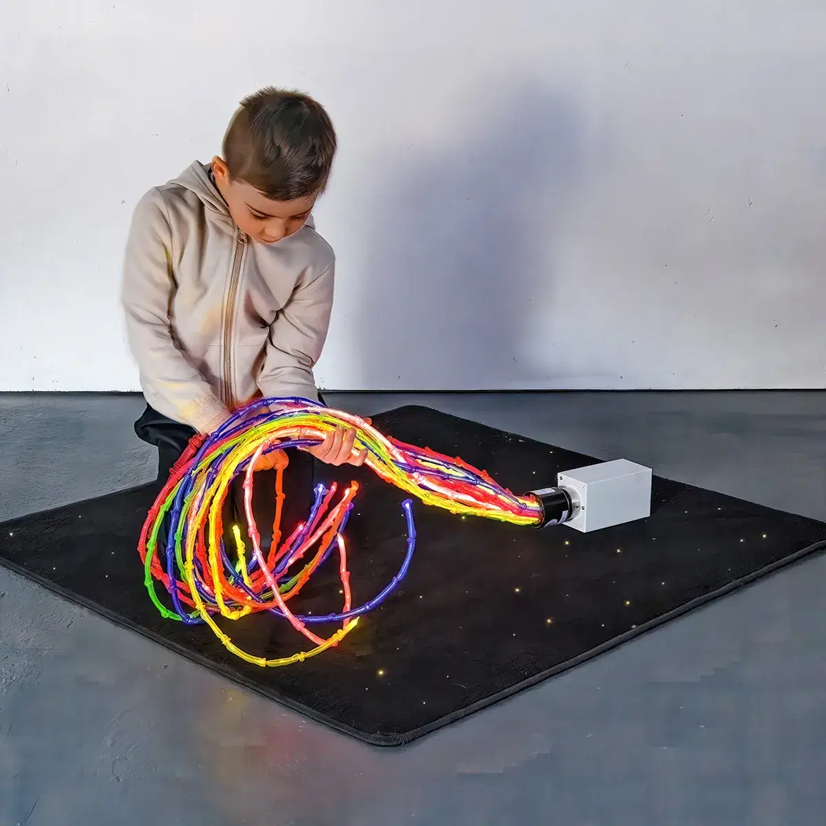 Soft, tactile, and visually stimulating, the Fibre Optic Carpet invites users to sit, lie down, or simply relax among the lights, making it ideal for both interactive play and calming experiences.